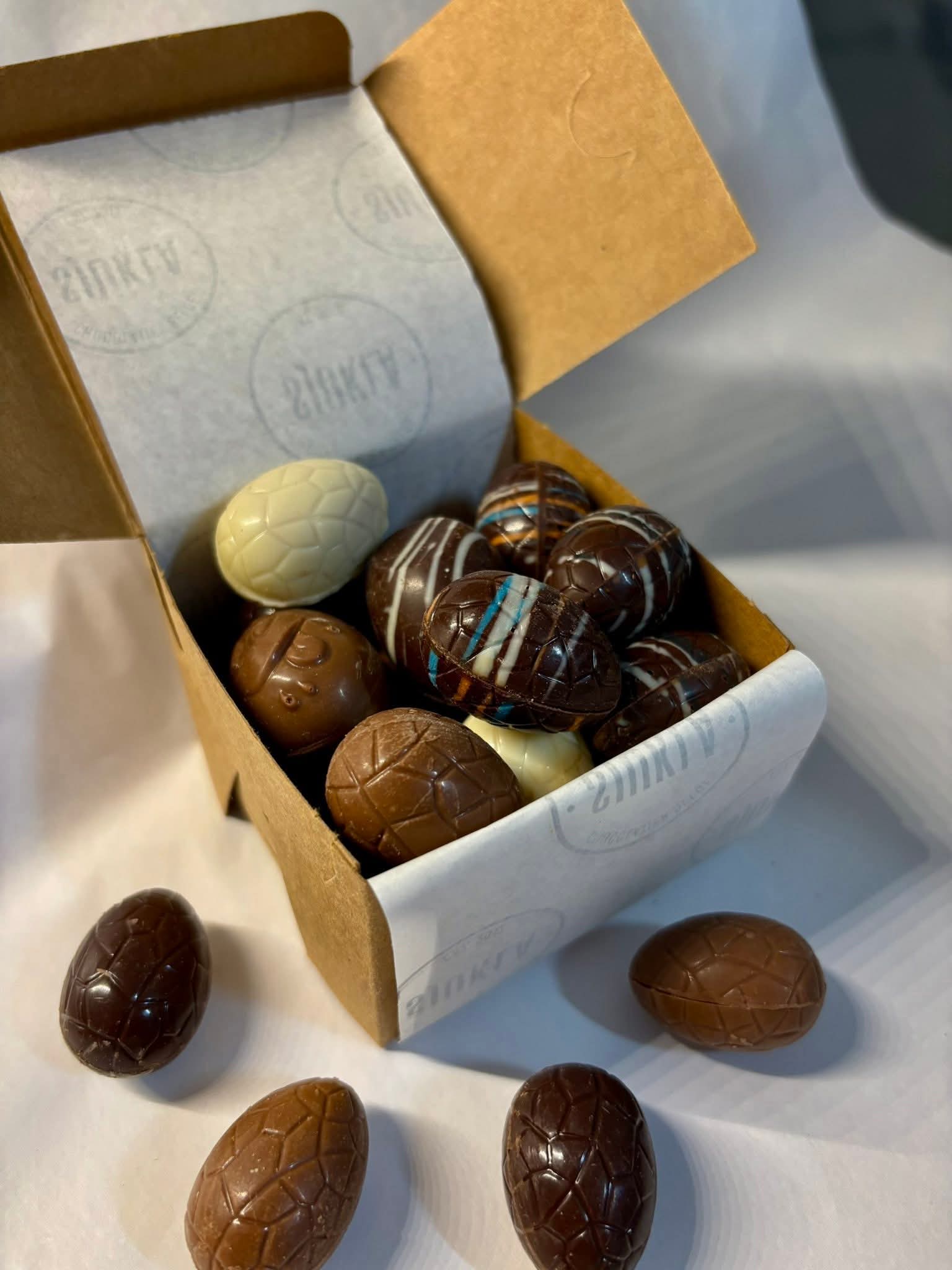 A curated selection of mini eggs filled with flavours from our Classic collection. Each box is unique, offering a delicious surprise in every bite. The perfect introduction to Easter!
